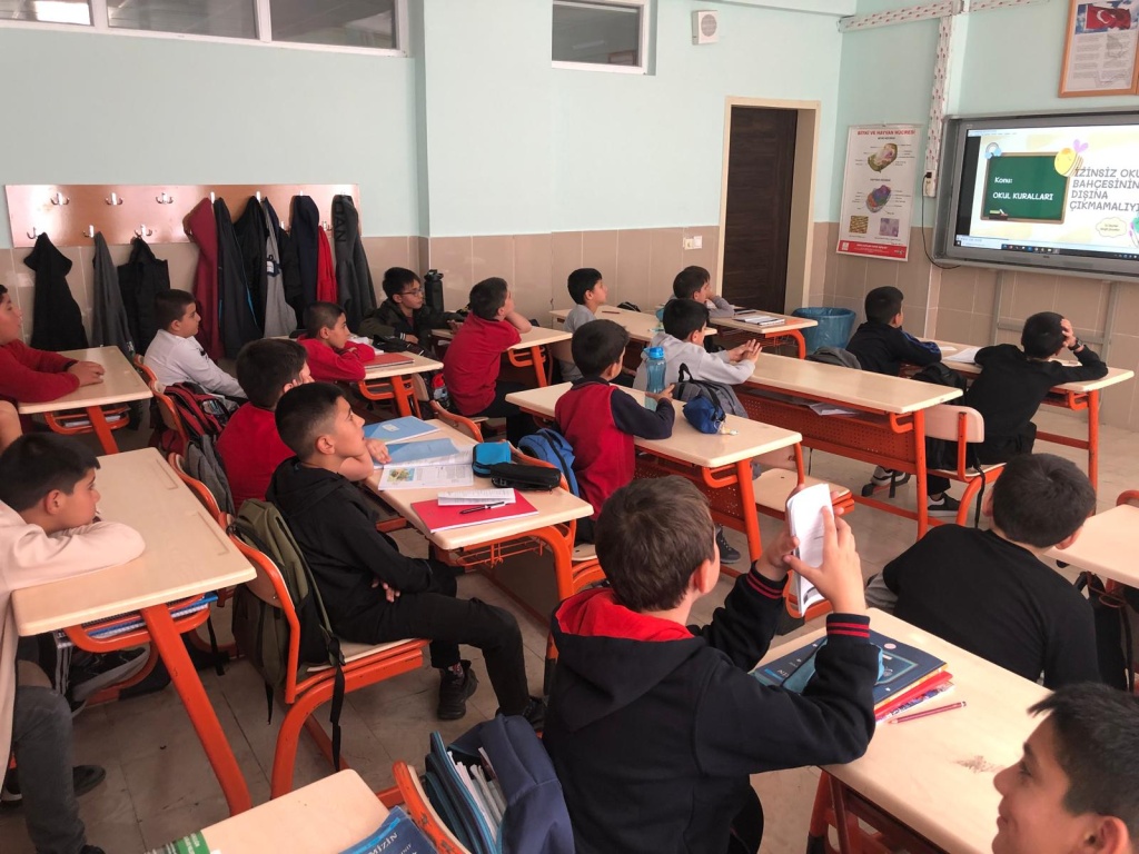 Okulumuzda öğrencilerimizin okul ortamına daha kolay uyum sağlaması ve kuralları doğru bir şekilde öğrenmeleri amacıyla rehber öğretmenimiz tarafından "Okul Kuralları" adlı video gösterimi yapıldı. Öğrencilerimiz, okulda dikkat etmeleri gereken davranışlar, sınıf içi kurallar ve arkadaşlık ilişkilerinde uyulması gereken değerler konusunda bilgilendirildi.