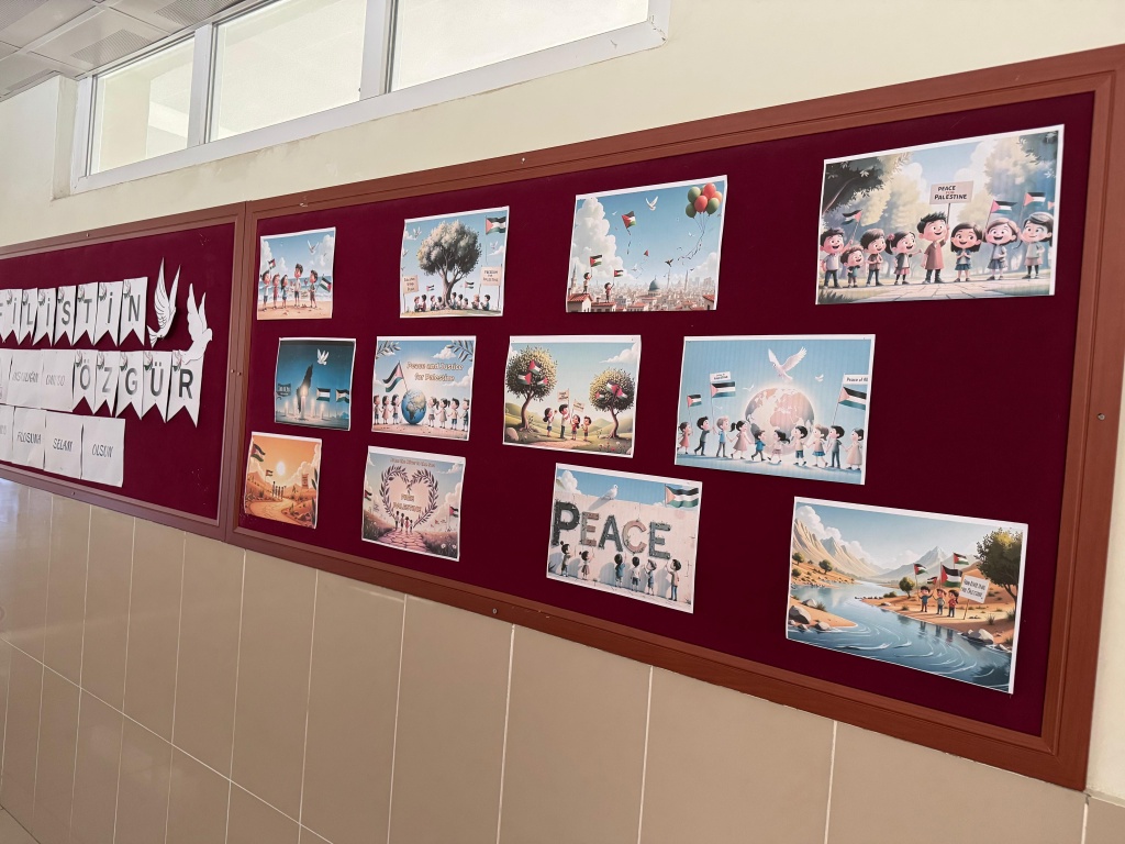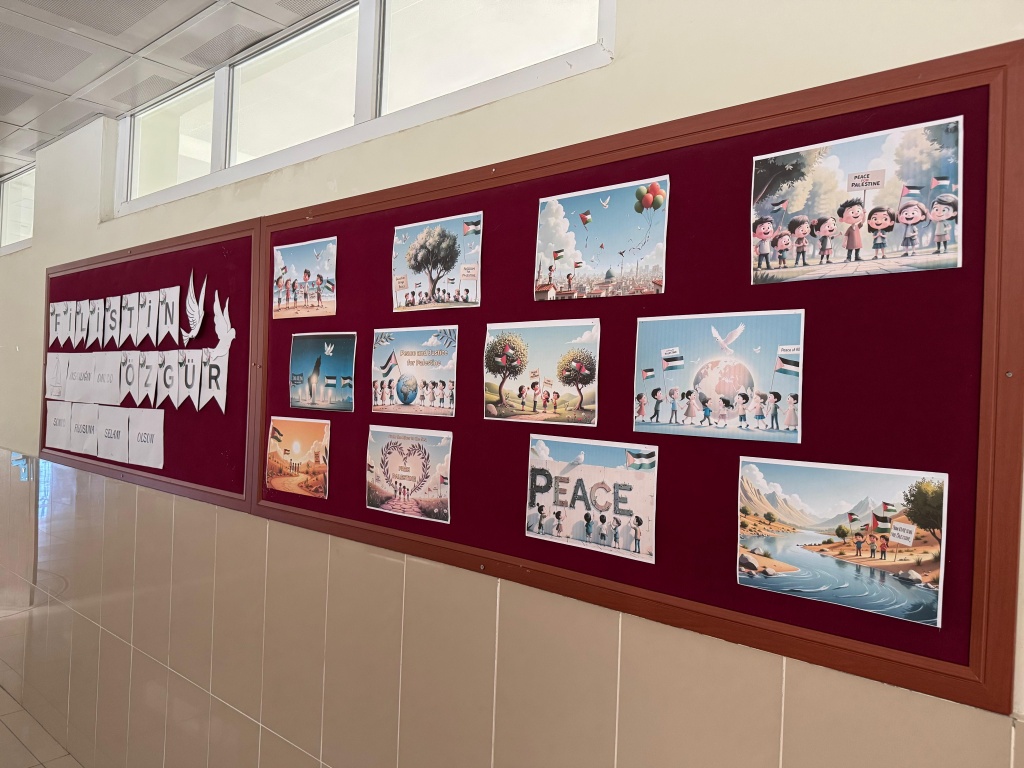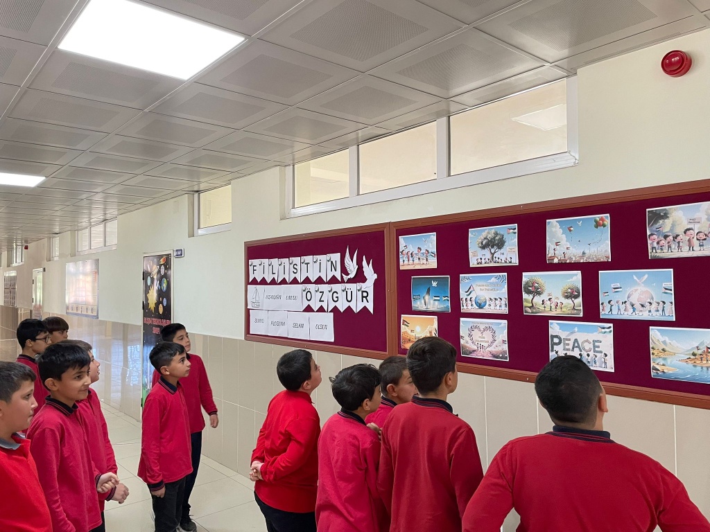 Millî Eğitim Bakanlığı’nın çağrısı doğrultusunda, okulumuzda öğrencilerimizin katılımıyla Filistin ve Gazze temalı farkındalık etkinliği gerçekleştirildi. Etkinlikte, öğrenciler barış, adalet ve insan hakları üzerine anlamlı mesajlar verdiler.
