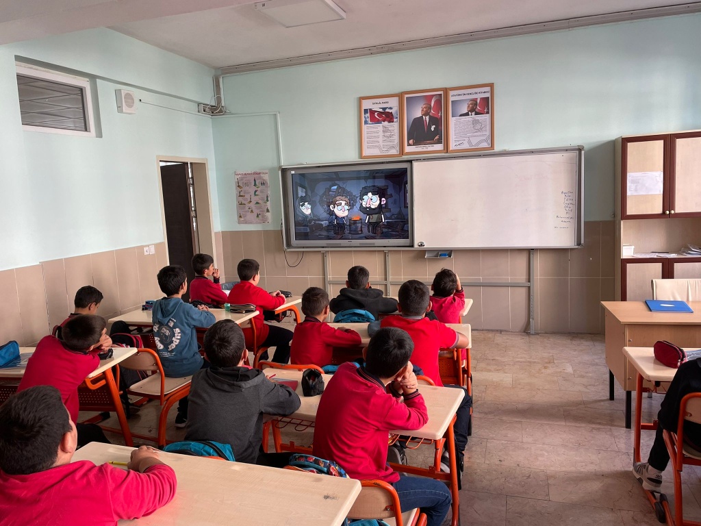 Öğretmenlerin rehberliğinde gerçekleştirilen etkinlikte, çocuklara sadece bilgi kazandırmak değil; vicdan, adalet ve insan olmanın sorumluluğunu öğretmenin önemi vurgulandı.